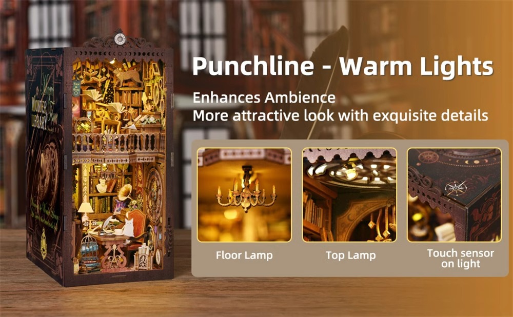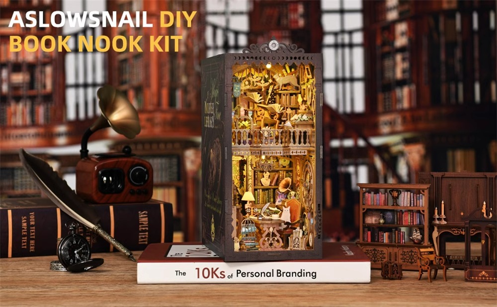 Magic time, hand-assembled model, library DIY hut, standing toys, ornaments, small house building block gifts